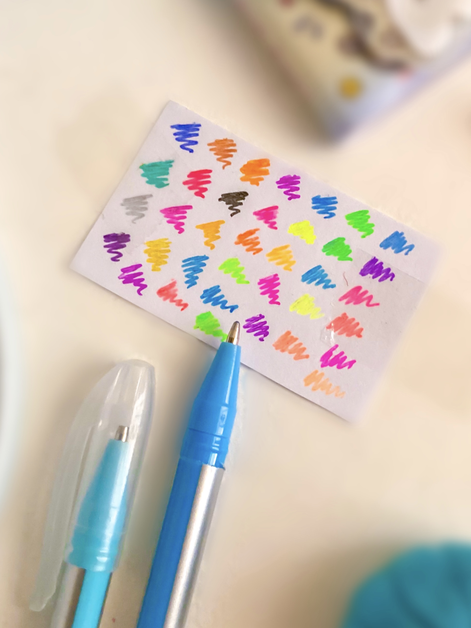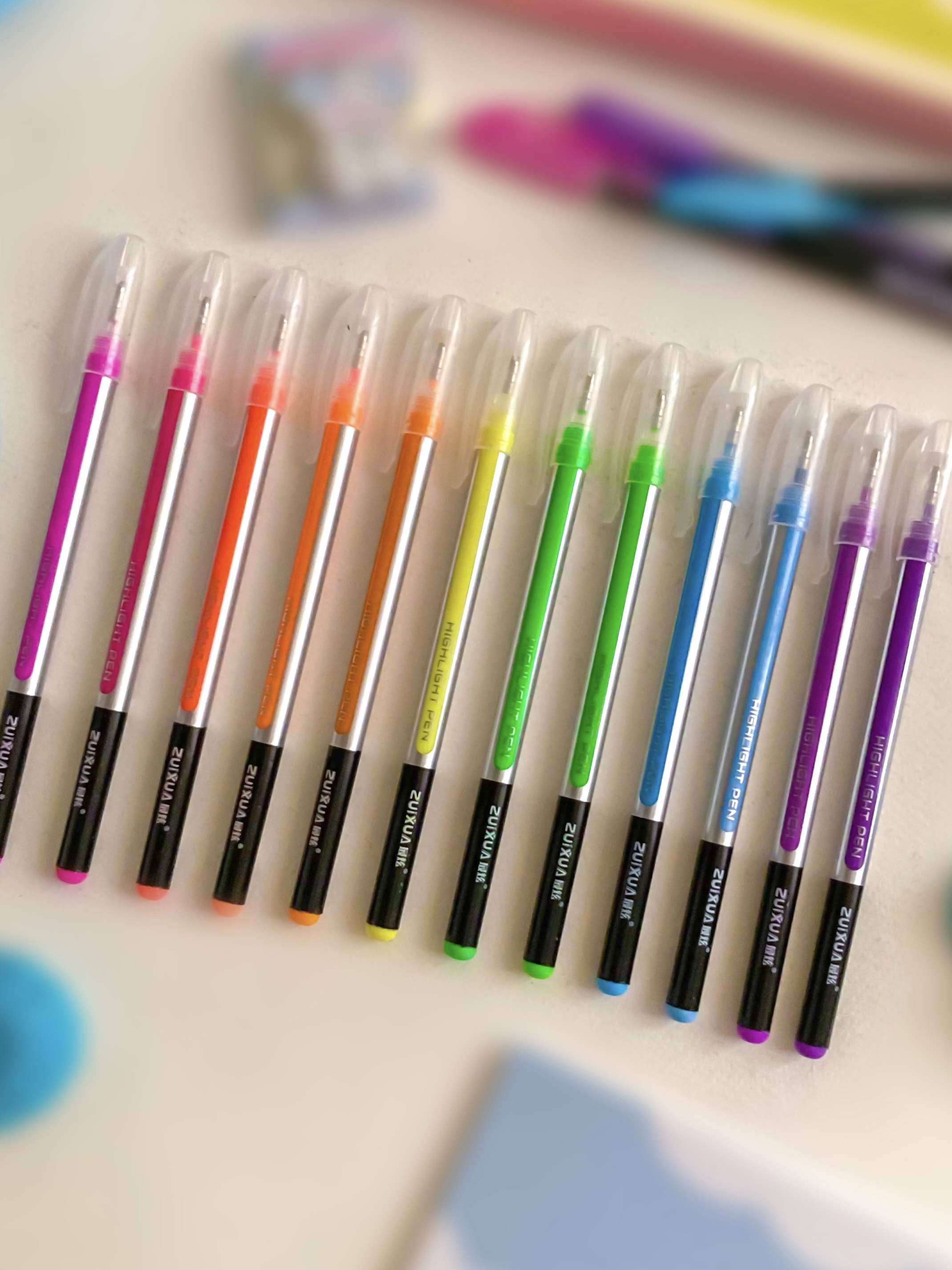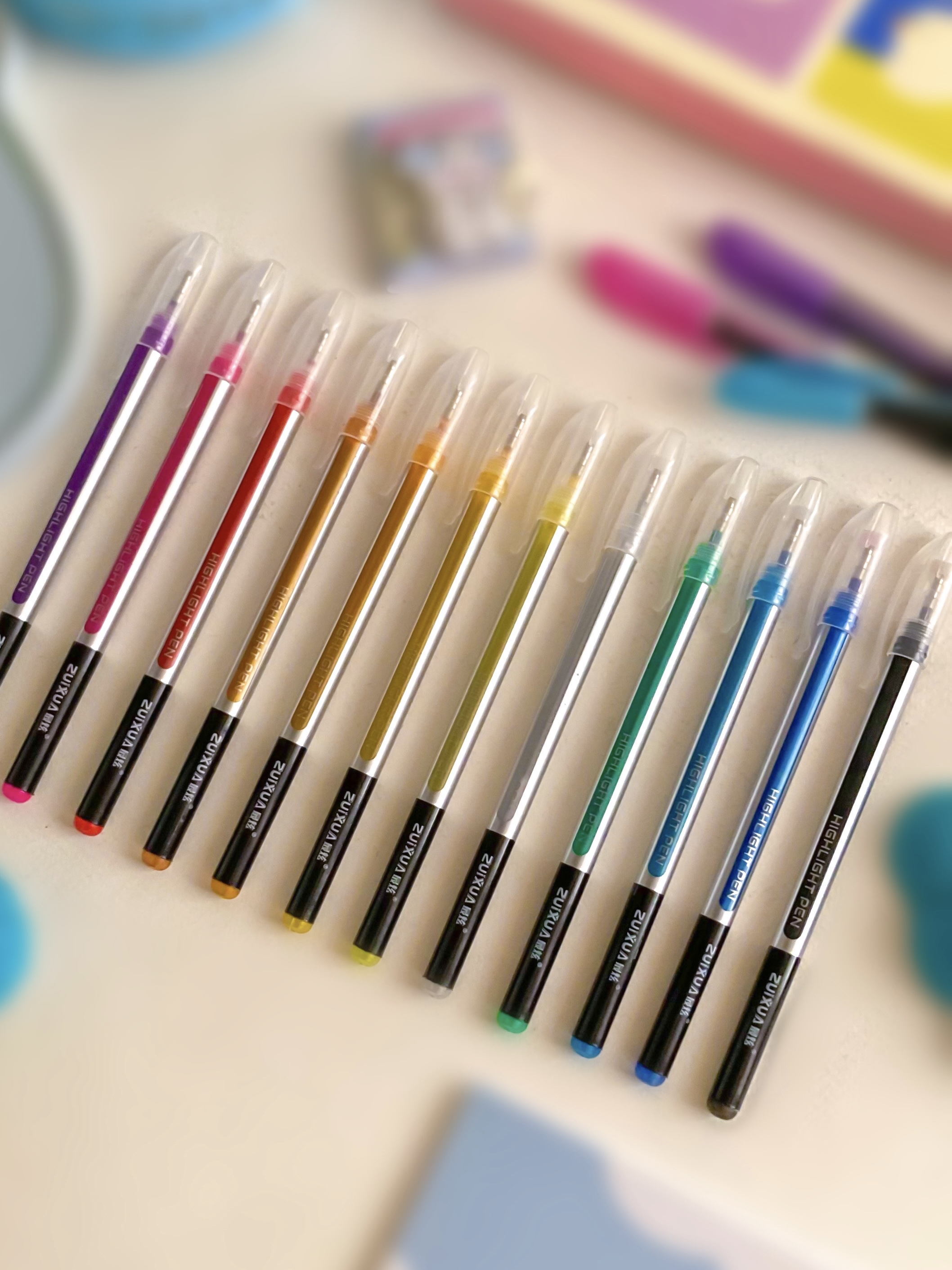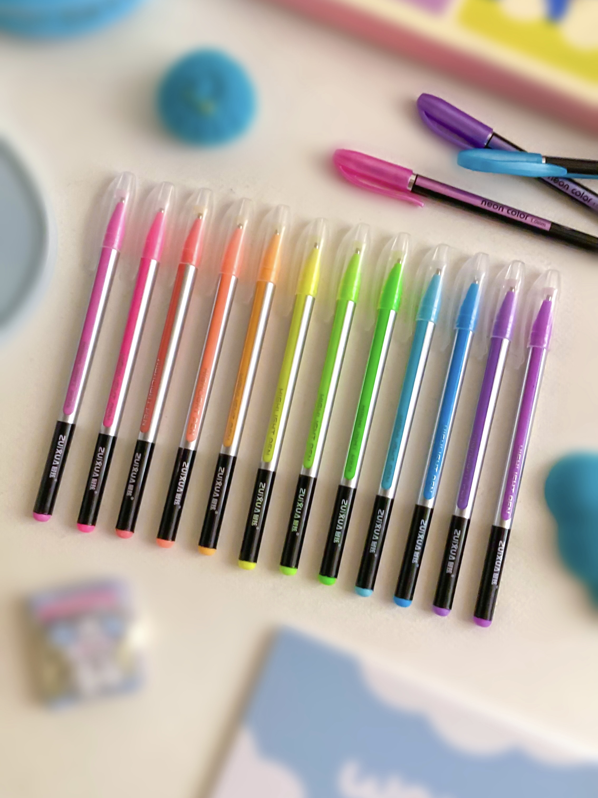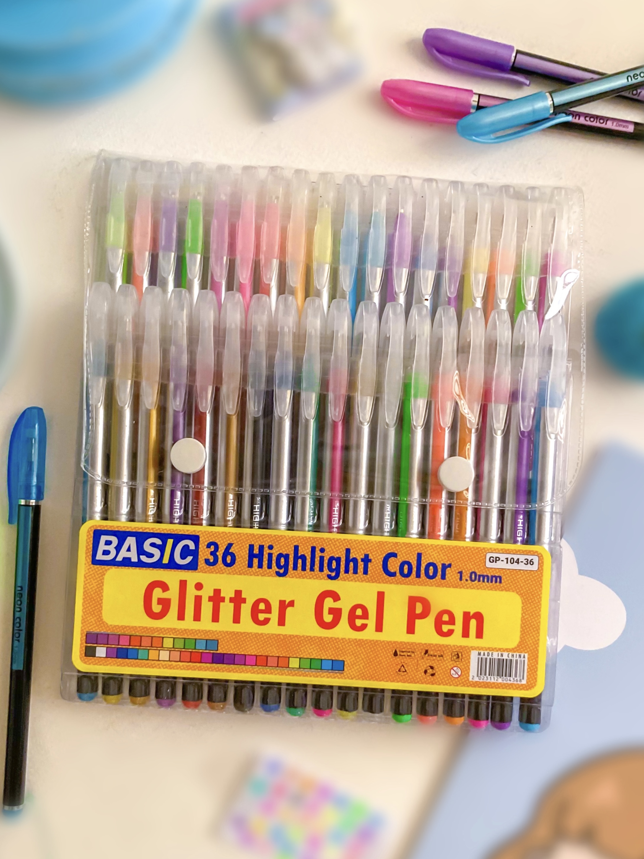 هرپک شامل ۱۲رنگ خودکار اکلیلی،۱۲رنگ خودکار پاستلی و۱۲رنگ خودکار نئونی هست-ضخامت قلم: ۱میل-روی کاغذ مشکی هم میشه باهاش نوشت