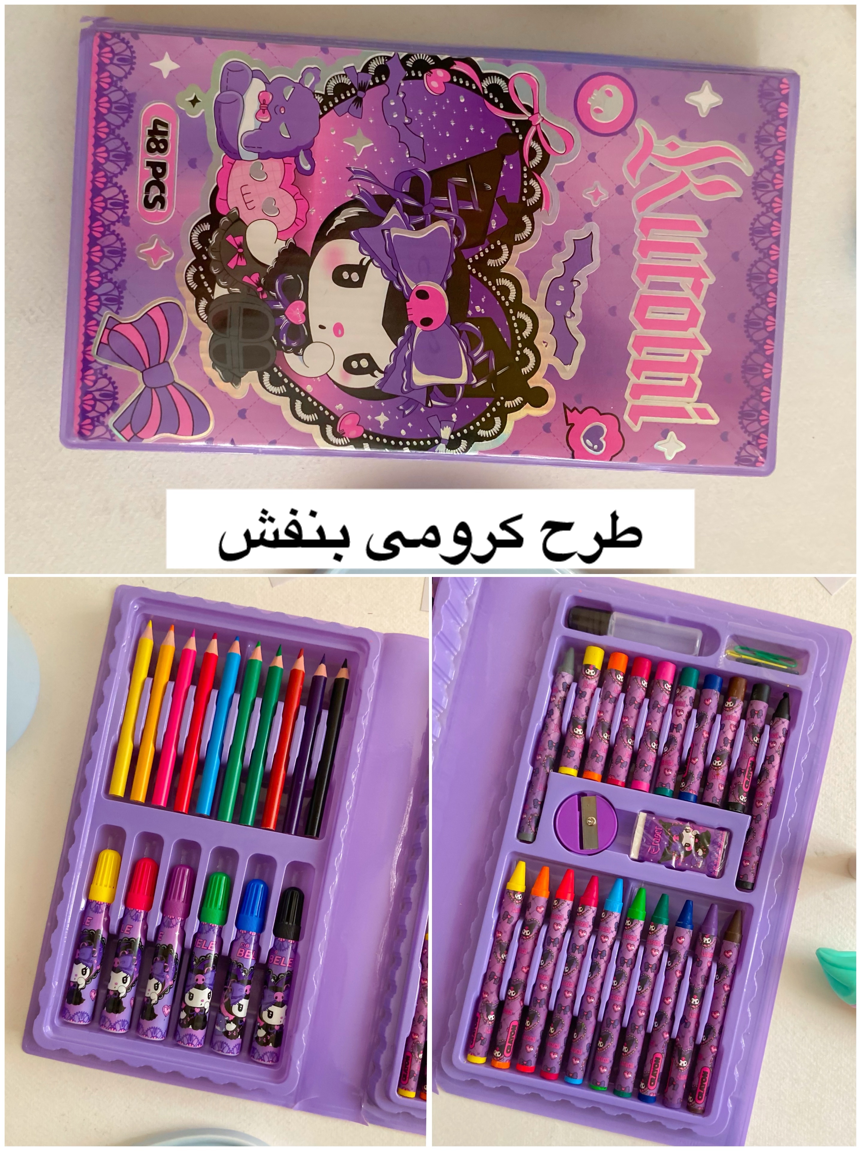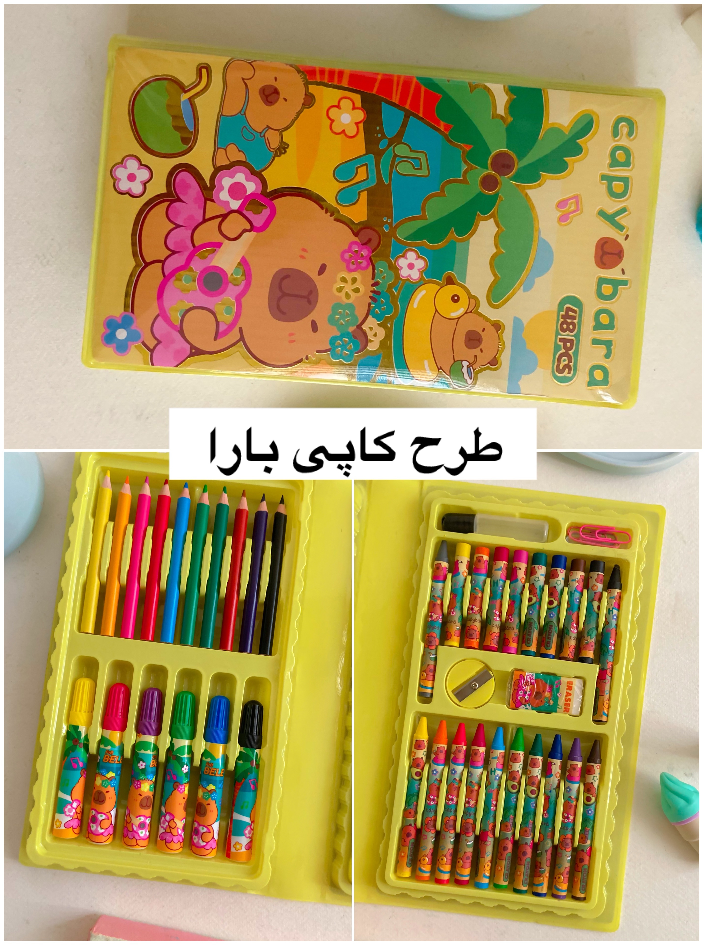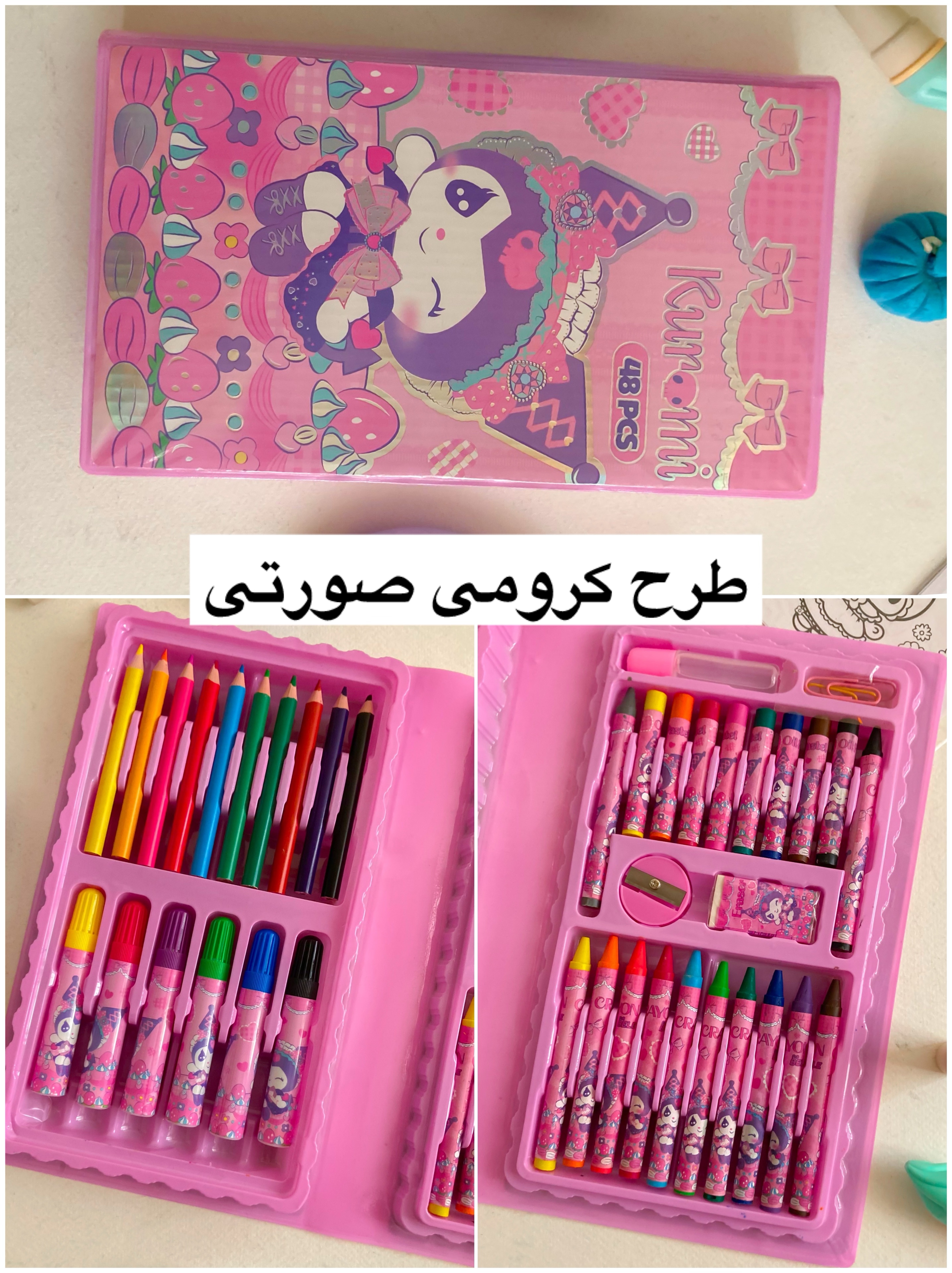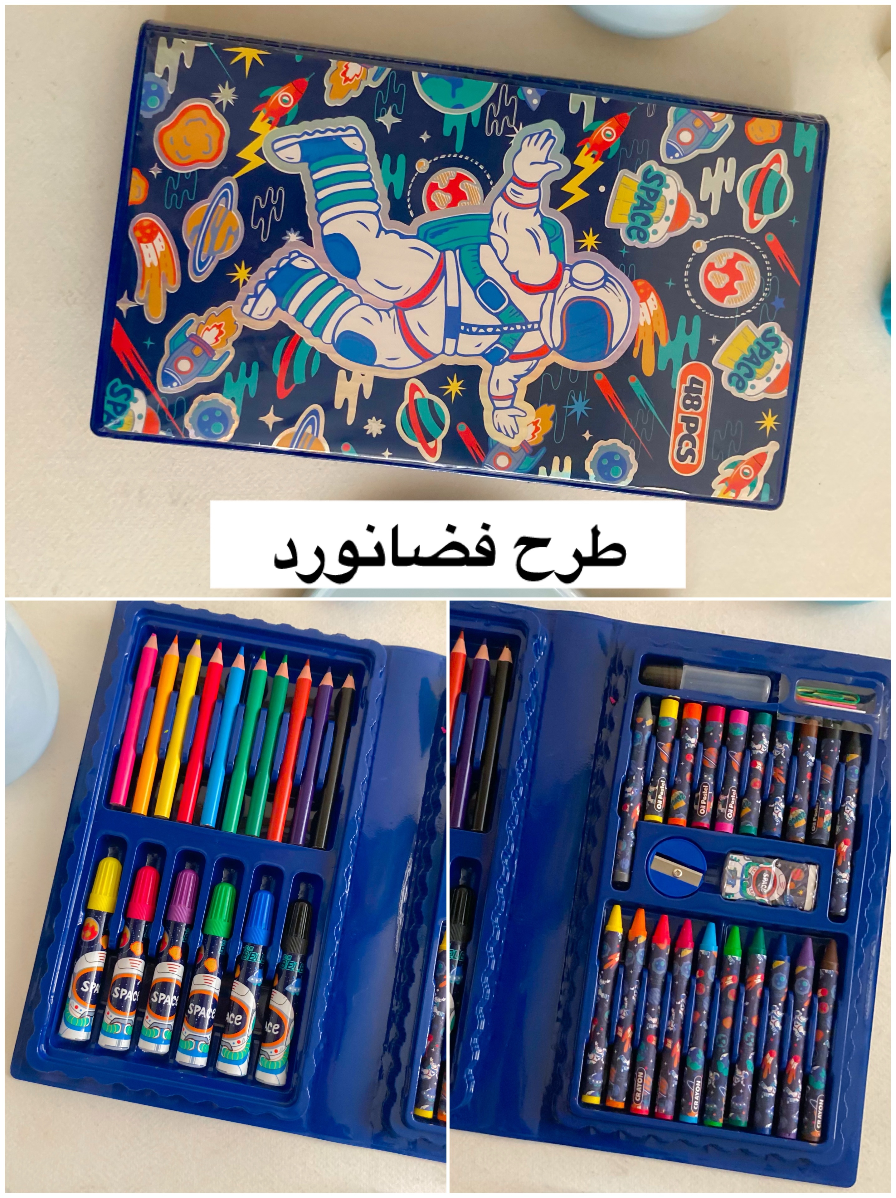 هرپک۴۸تایی شامل ۱۰مدادرنگی+۶تا ماژیک رنگامیزی+۱۲رنگ مدادشمعی+۸رنگ پاستل+پاکن وتراش+چسب مایع+گیره کاغذ همراه یک پک ۶ورقه برای رنگامیزی