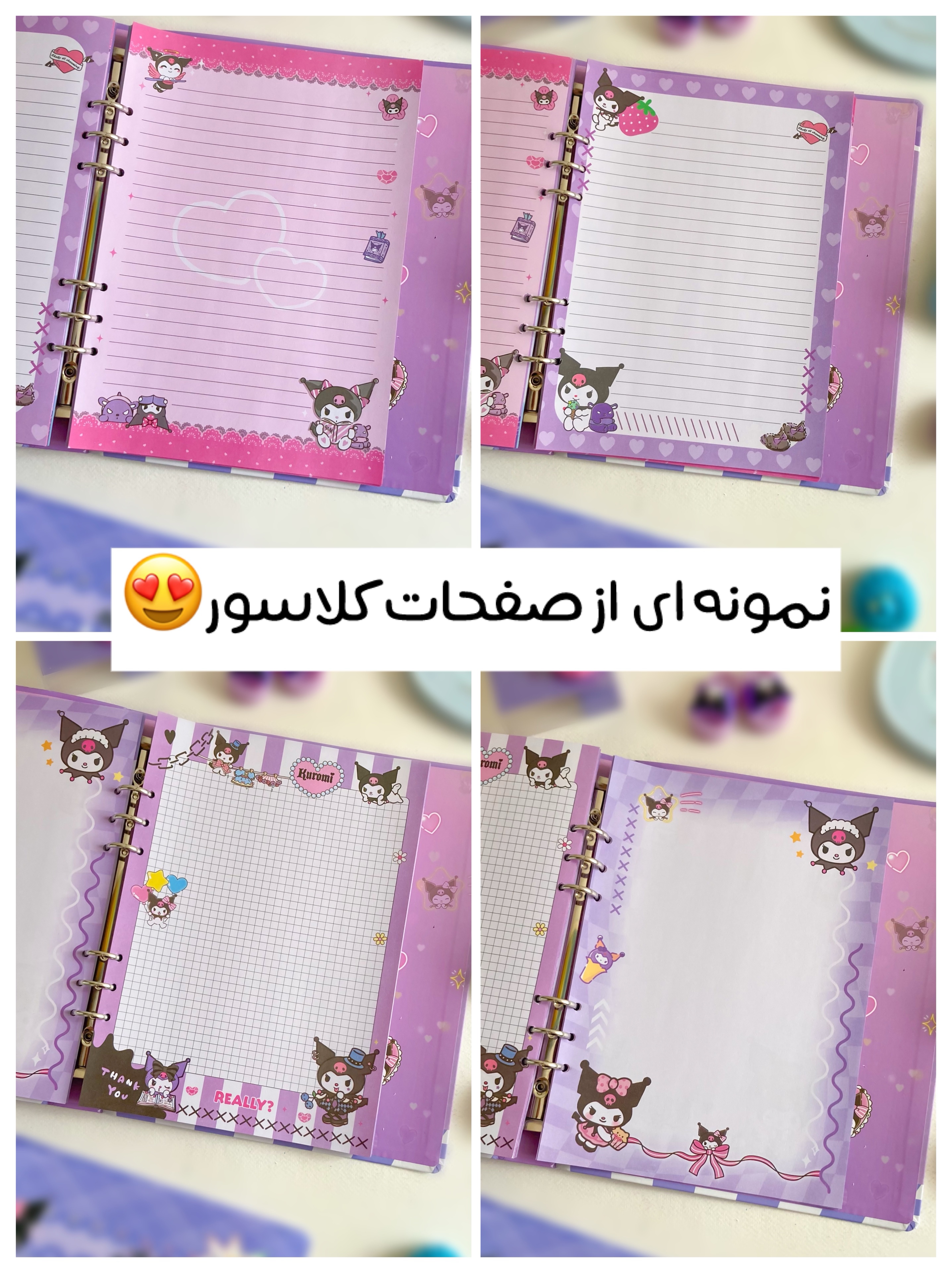 جلد کلاسور: مقوای فشرده (نسبتا مقاوم)-دارای صد برگ طرحدار و رنگی از قبیل صفحات شطرنجی،خط دار،ساده،برنامه ریزی و…-ابعاد تقریبی کلاسور:۳۰*۲۲سانتی متر